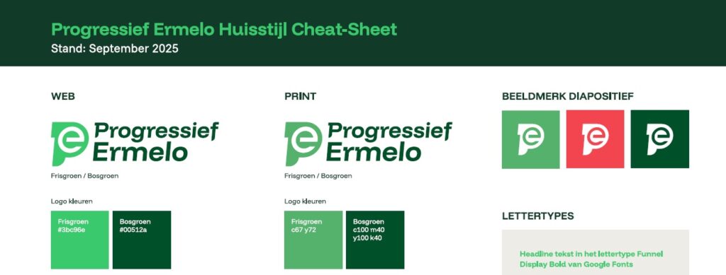 Ben je op zoek naar de juiste kleuren en lettertype van Progressief Ermelo?