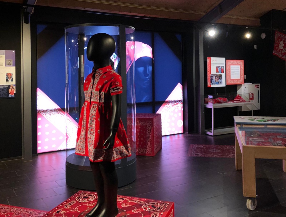 We sloten ons bezoek af met een blik op de huidige tentoonstelling: “De Rode draad van de Boerenzakdoek”, een aanrader.